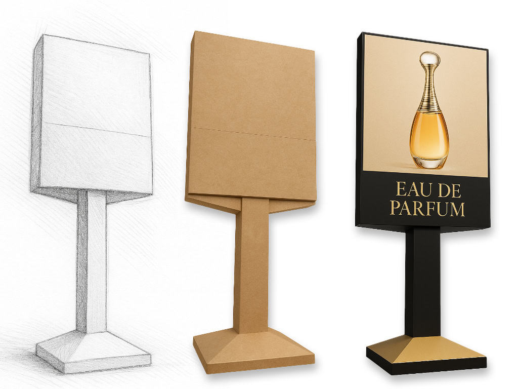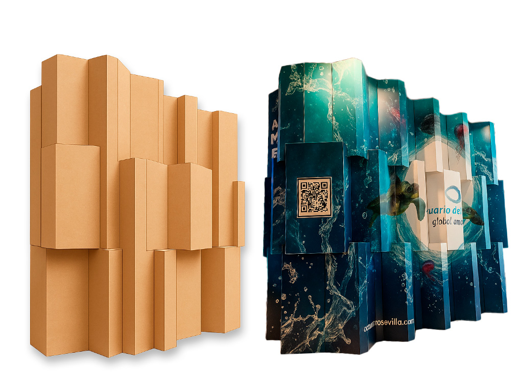 Todo comienza con un dibujo. Lo convertimos en una pieza real, práctica y con personalidad. Creamos estructuras, stands y expositores en cartón que unen diseño, sostenibilidad y emoción. Si puedes imaginarlo, nosotros lo hacemos realidad.